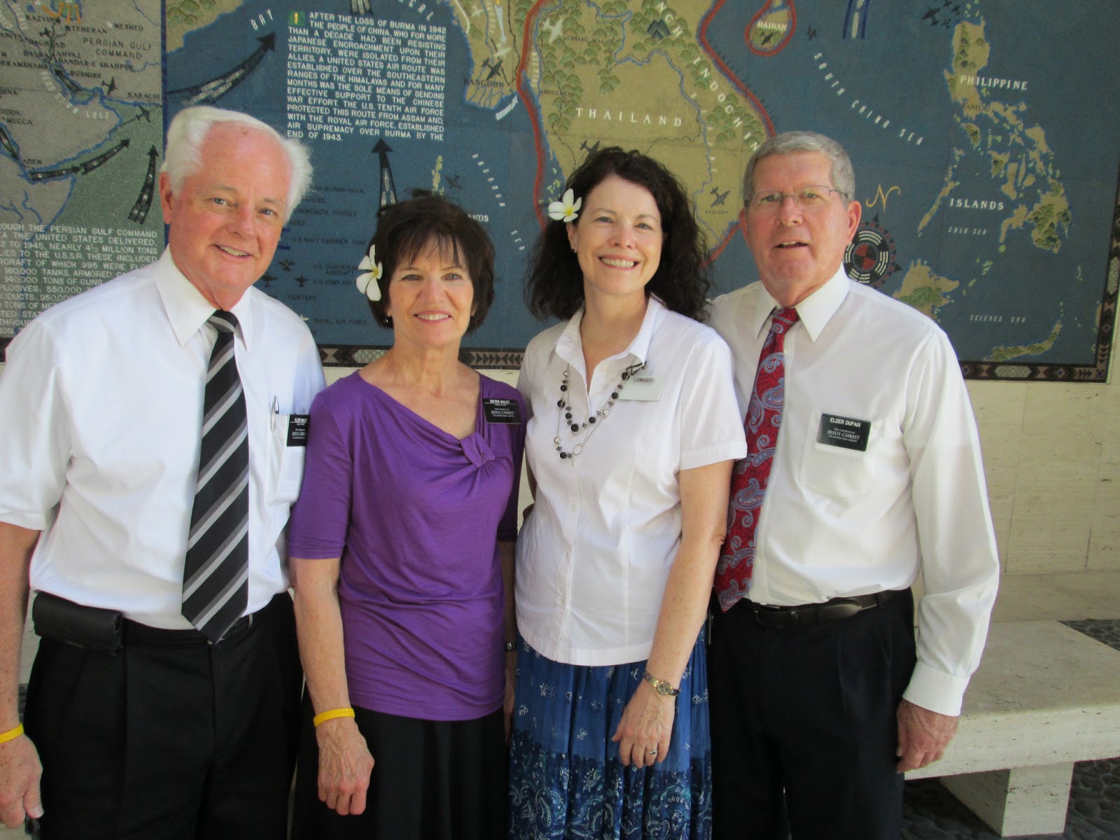 Sis. DuPaix and Sis. Farnsworth, posing with a "Mom" and some of her daughters.